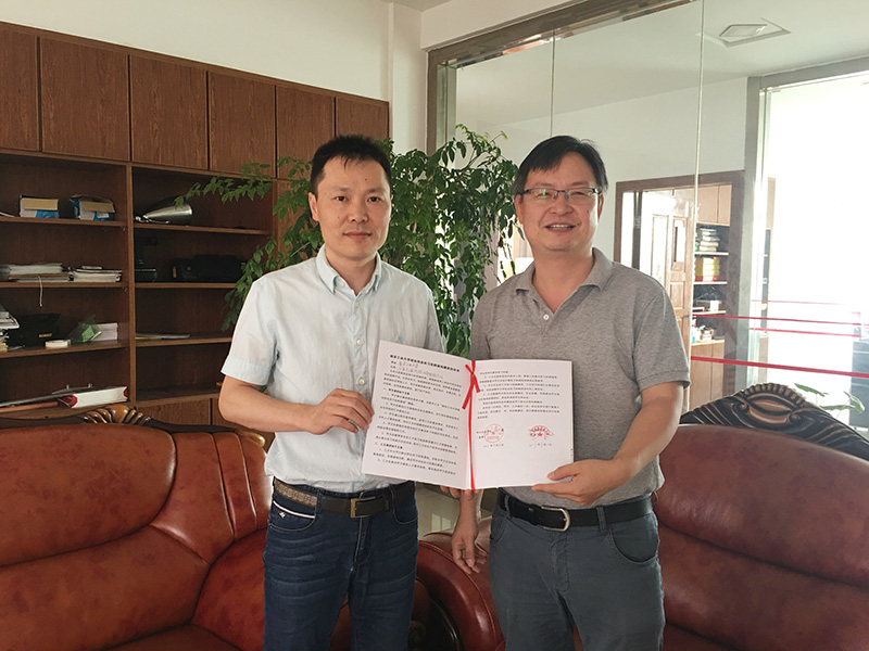 图为天源公司代表在本公司会客厅接收南京工业大学数理科学学院力学系何斌教授授予的证书!